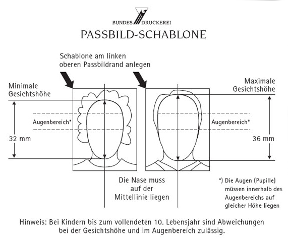 Durch die Einführung der Gesichtsbiometrie in den Reisepässen werden insbesondere an das Passbild verschiedene Anforderungen gestellt. Damit ein Passbild Biometrie tauglich ist, muss dieses unter anderem folgende Merkmale aufweisen: